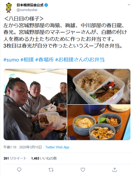 無観客大相撲で「弁当」が話題 各部屋から“自慢ツイート”