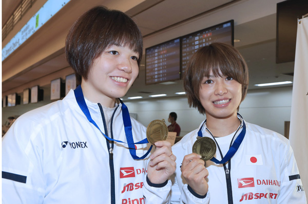 全英女子ダブルス優勝の福島(右)と広田(C)日刊ゲンダイ