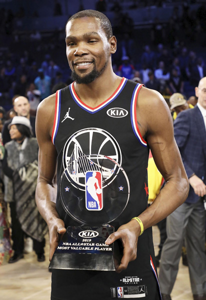 オールスター戦で最優秀選手に輝いたケビン・デュラント(C)ゲッティ=共同