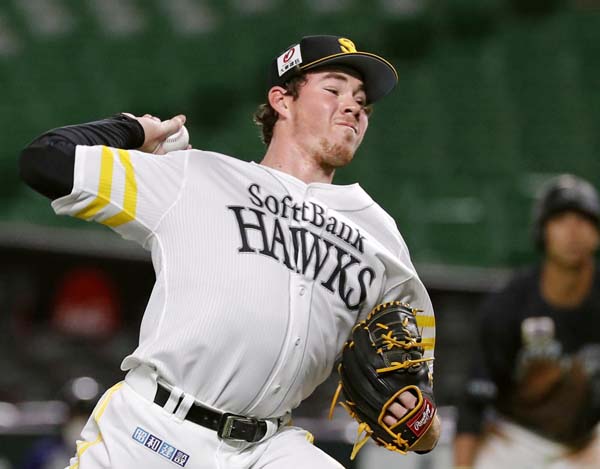 ロッテとの練習試合に先発したソフトバンクのスチュワート(C)共同通信社