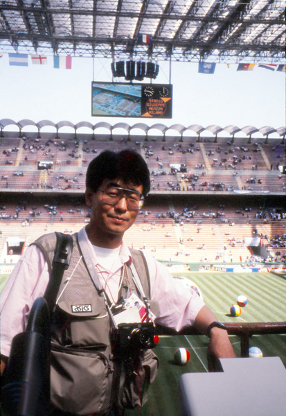 1990年イタリアW杯を現地取材中の筆者(提供写真)