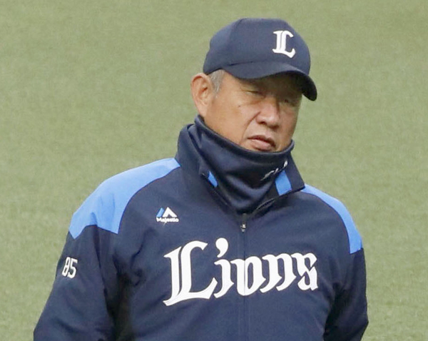 取材に応じる西武の辻監督(C)共同通信社