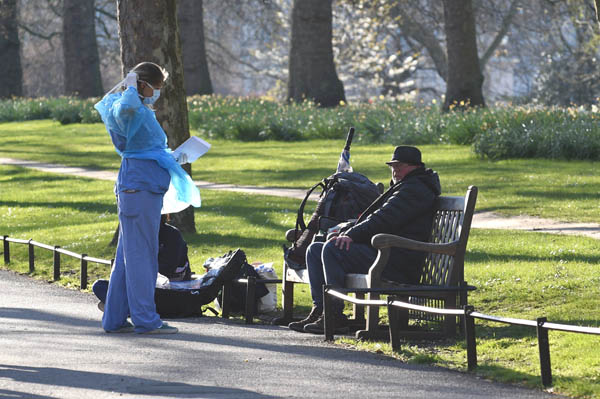 ホームレスに話し掛ける女性医療従事者(C)山田一仁/KazPhotography