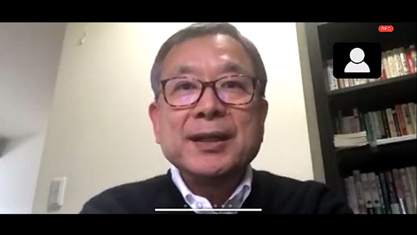 自宅でメディアと質疑応答する村井チェアマン(C)日刊ゲンダイ