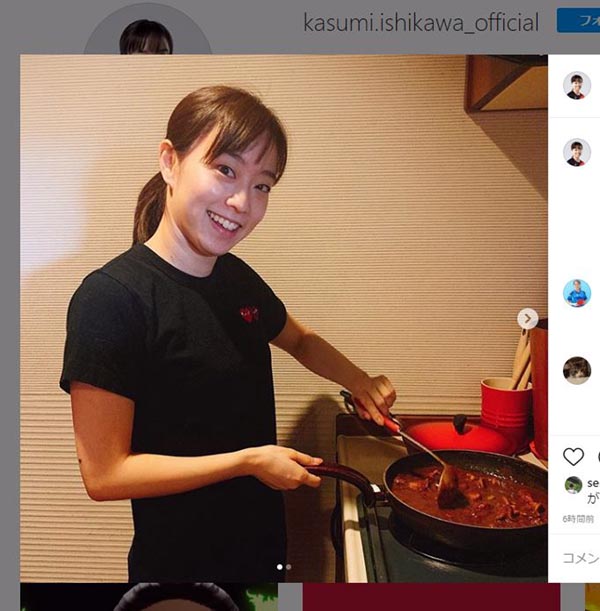 石川佳純が“#おうち時間”公開 カレー皿の前になぜか赤い箸