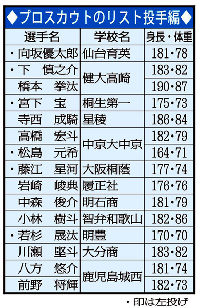 センバツ用にプロ作成「極秘指名リスト」一挙公開【投手】