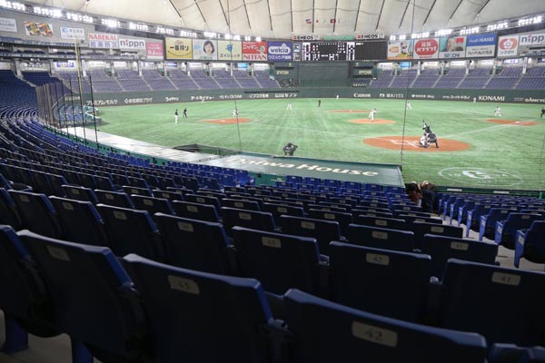 無観客で行われた3月のオープン戦(東京ドーム)/(C)日刊ゲンダイ
