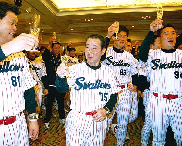 2001年の日本一祝勝会での若松監督(央)/(C)日刊ゲンダイ