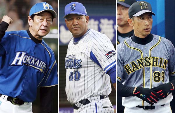 (左から)2年連続Bクラス低迷日ハムの栗山監督、リーグVを求められるDeNAのラミレス監督、電撃解任もありえる!?阪神の矢野監督(C)共同通信社