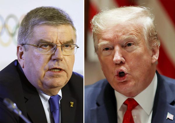 トランプ米大統領は中国の対応に激怒(IOCのバッハ会長=左、共同)/(C)ロイター