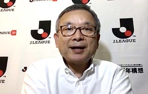 Jリーグ臨時実行委員会終了後に行われたリモート会見での村井チェアマン