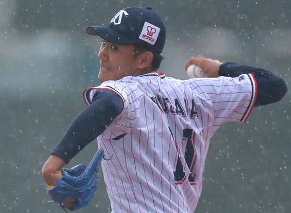 雨の中、力投する奥川(球団提供)