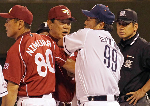 2013年の西武対楽天戦で楽天・小山がスピリーへの暴投をきっかけに乱闘が発生。楽天・星野仙一監督は西武・渡辺久信監督とサシでやりあった(C)日刊ゲンダイ