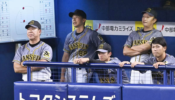 4連敗にボー然の矢野監督(左から2人目)/(C)日刊ゲンダイ