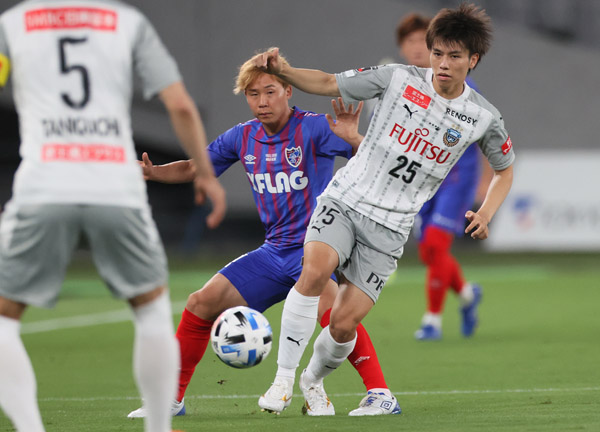 川崎MF田中(右)とマッチアップするFC東京MF安部(C)Norio ROKUKAWA/office La Strada