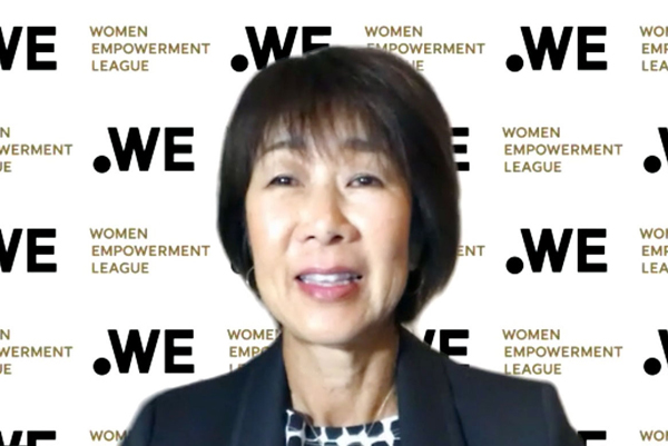 オンラインで記者会見するサッカー女子のプロリーグ「WEリーグ」の代表理事に就任した岡島喜久子氏(C)共同通信社