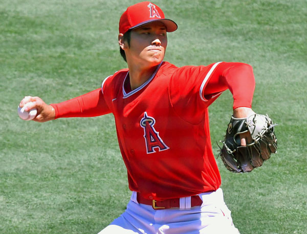 実戦形式に登板したエンゼルスの大谷(C)共同通信社