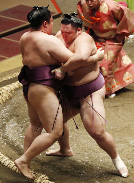 寄り切りで遠藤を破る朝乃山(C)日刊ゲンダイ