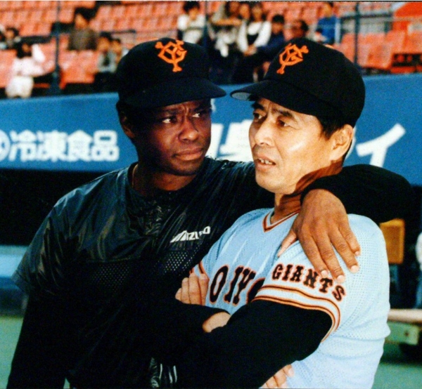 王監督(当時)と肩を組むクロマティ(左)(C)日刊ゲンダイ