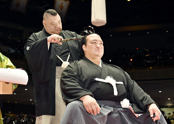 もともと折り合いが良くない2人(2019年の断髪式での田子ノ浦親方と元横綱稀勢の里・荒磯親方=右)/(C)共同通信社