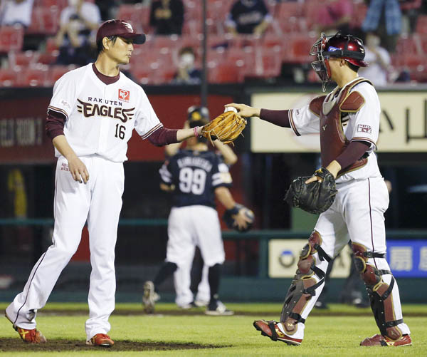 1安打完封勝利を挙げウイニングボールを手にする涌井(C)共同通信社