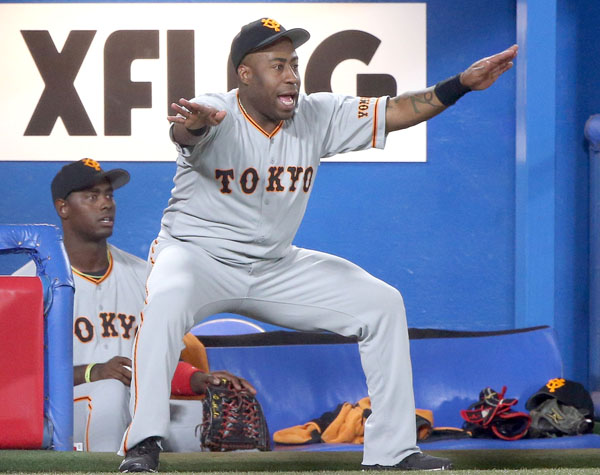 五回の岡本の適時打の際、ベンチから飛び出して喜ぶウィーラー(C)日刊ゲンダイ