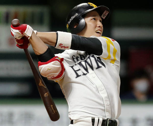 8月28日の日本ハム戦で自身初の2本塁打を記録したソフトバンク・栗原(C)共同通信社