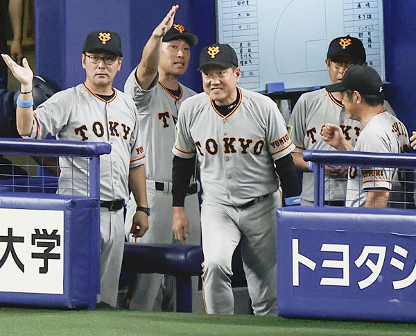 原監督、元木ヘッド(左)ら巨人の首脳陣(C)共同通信社