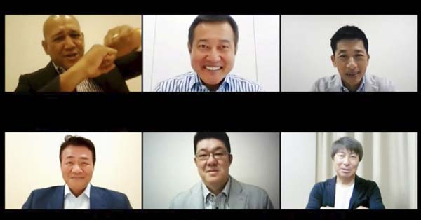 5月28日、動画でファンに開幕メッセージを送る(上段左から)DeNA・ラミレス、巨人・原、阪神・矢野、(下段左から)中日・与田、広島・佐々岡、ヤクルト・高津のセ・リーグ6球団の監督(JERAセ・リーグ特設サイトから)