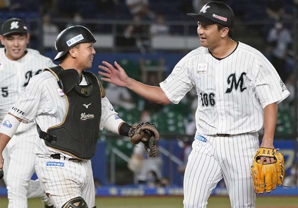 澤村(右)がロッテでイキイキ!(C)共同通信社