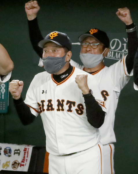 九回に2点を返し、喜ぶ原監督(C)日刊ゲンダイ