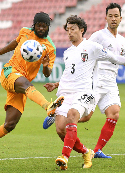 ゴール前で体を張った守備を見せる室屋(C)ロイター=共同
