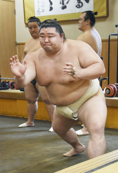 「だったら」と参加を表明したのに…(稽古再開の正代)/(代表撮影)