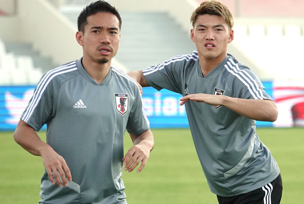 2019年の代表活動時の長友(左)と堂安(C)Norio ROKUKAWA/office La Strada