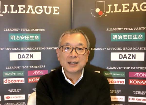 ズーム会見で村井チェアマンは「期待を裏切る結果。本当に残念」と頭を下げた(提供写真)
