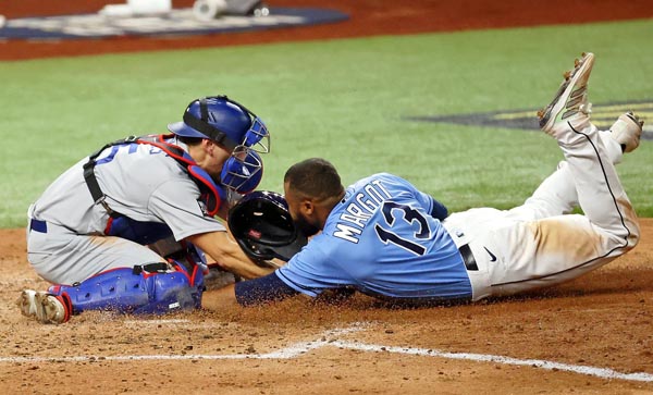 本盗を試みるなど、レイズにはトリッキーなプレーも少なくないが(C)ロイター/USA TODAY Sports