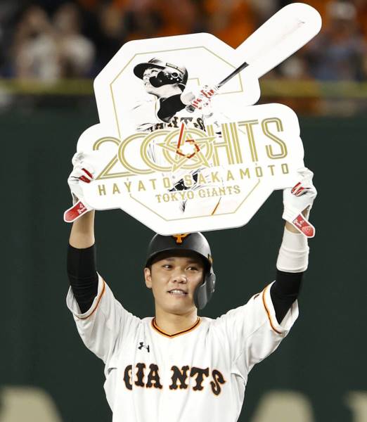 史上53人目の通算2000安打を達成し記念のボードを掲げる(C)共同通信社