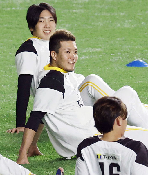 いずれも登板が確実なソフトバンク千賀(手前)と石川(奥)/(C)共同通信社