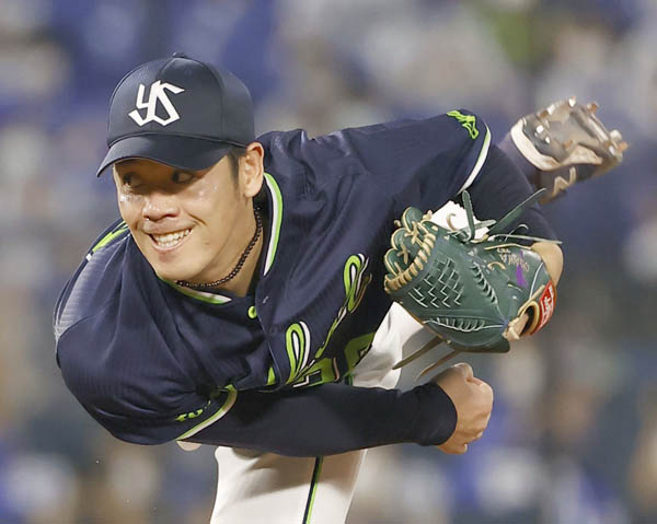 8月15日、DeNA戦で無安打無得点試合を達成したヤクルト・小川(C)共同通信社