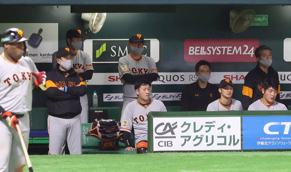 静まり返る巨人ベンチ(左から2人目が原監督)/(C)日刊ゲンダイ