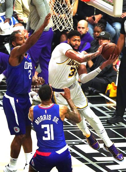 レイカーズのA・デイビス選手(中央)/(C)UPI/ニューズコム/共同通信イメージズ