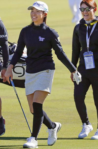 練習ラウンドの笑顔の渋野(C)共同通信社
