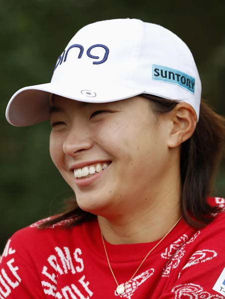 最終ラウンドを終え、笑顔で取材に応じる渋野日向子。通算1アンダーで4位だった(C)共同通信社