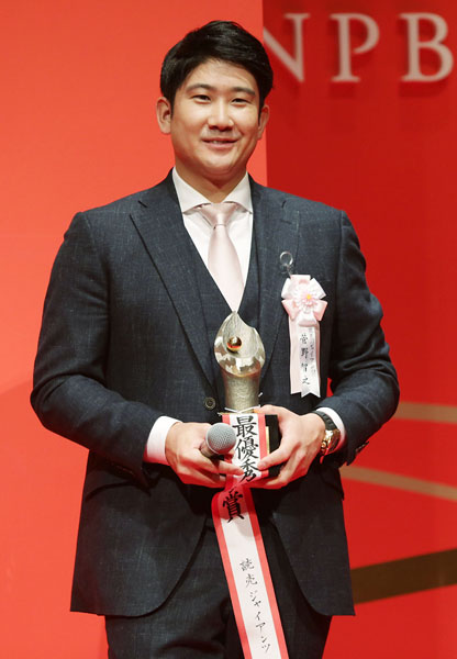 自身2度目のMVPを受賞した菅野(C)日刊ゲンダイ