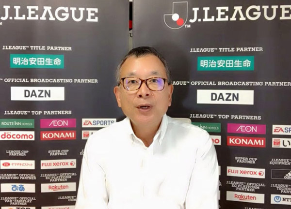 弁舌爽やかな物言いで発進するJリーグの村井満チェアマン(C)共同通信社