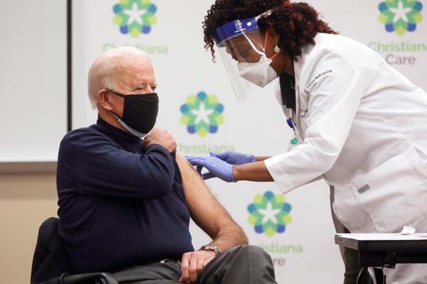 新型ウイルスワクチンを接種する米国のバイデン次期大統領(C)ロイター