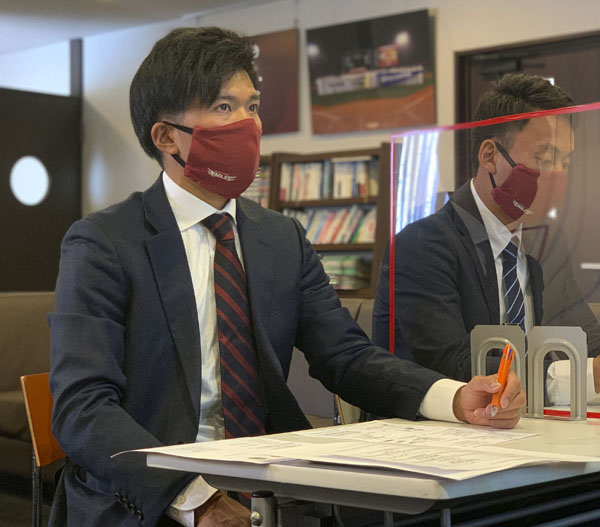オンラインでプロ野球の新人研修会を受講する楽天の早川(球団提供)