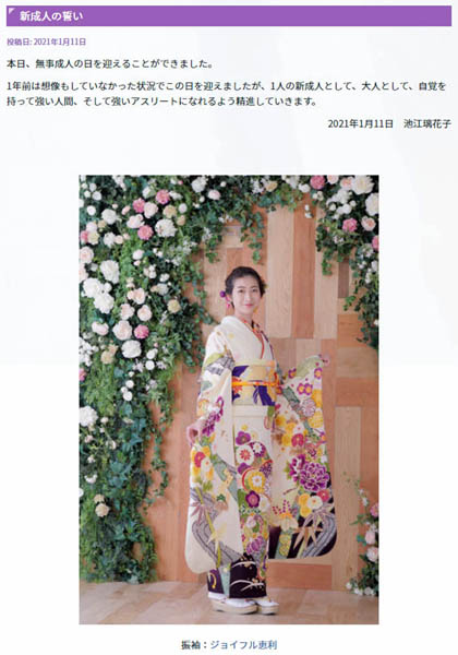 (池江璃花子オフィシャルサイトから)