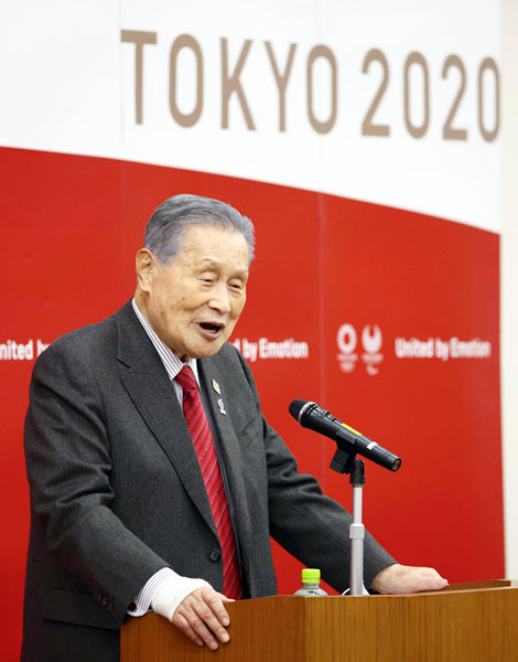 職員に向け年頭挨拶をする東京五輪・パラリンピック組織委員会の森喜朗会長(代表撮影)