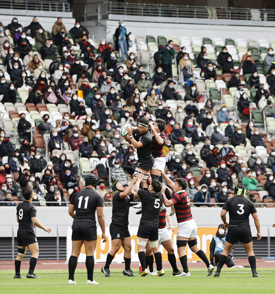 スタンドには大勢のファンが(緊急事態宣言下で観客を入れて開催されたラグビー全国大学選手権決勝の天理大―早大戦)/(C)共同通信社